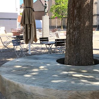 Blickfang und Aufenthaltsqualität sind auf dem Edmund-Erlemann-Platz entstanden. Die Stadt hat sich nicht lumpen lassen und der Bevölkerung eine Baumbank spendiert. Sie ist um einen der alten Bäume geschwungen, von …