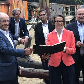 Mit Förderbescheiden in Höhe von € 4,6 Mio. kam NRW-Ministerin Ina Schnarrenbach nach Gladbach, empfangen von Oberbürgermeister Hans Wilhelm Reiners. Der hatte sich als Ort der Begegnung den Spielplatz am …