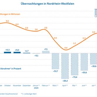 Im August 2020 verbuchten die nordrhein- westfälischen Beherbergungsbetriebe 3,5 Millionen Übernachtungen. Dies entspricht einem Rückgang von 29,0 Prozent im Vergleich zum August 2019. Wie Information und Technik Nordrhein-Westfalen als Statistisches Landesamt mitteilt, war der …