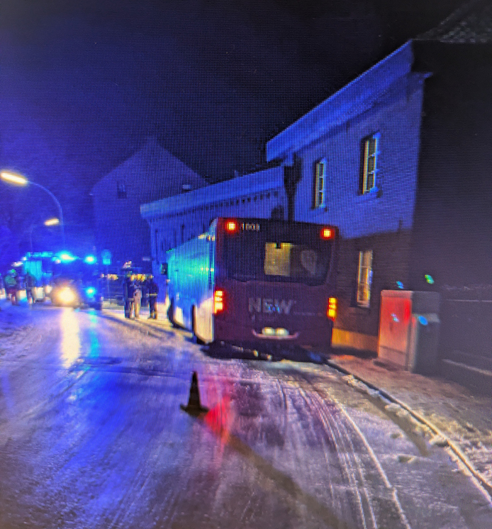 Gegen 20:30 Uhr, am 05.01.26, kam auf der Seidenweberstraße in Mönchengladbach-West ein Linienbus der NEW nach rechts von der Fahrbahn ab. Er prallte gegen das Einfahrtstor und die Hauswand eines dortigen Gehöfts. Der Bus wurde durch einen 33jährigen Busfahrer gesteuert, welcher bei dem Verkehrsunfall schwer verletzt wurde. Im Bus befanden sich drei Fahrgäste, darunter eine 83jährige Frau, die durch den Aufprall ebenfalls schwere Verletzungen erlitt. Die beiden anderen Fahrgäste blieben unverletzt. Beide Verletze wurden mittels Rettungswägen verschiedenen Krankenhäusern im Umfeld zugeführt.